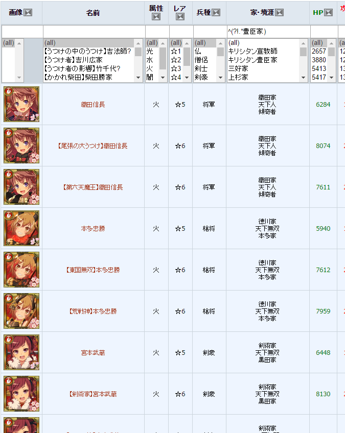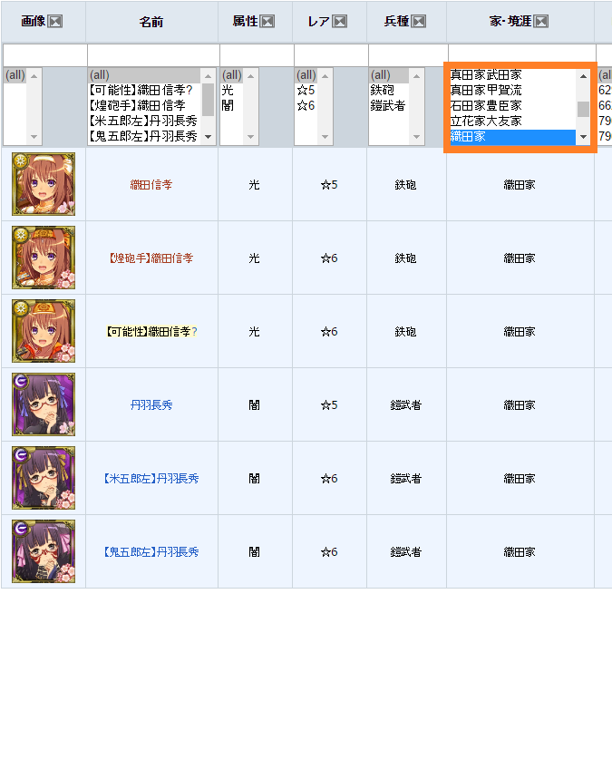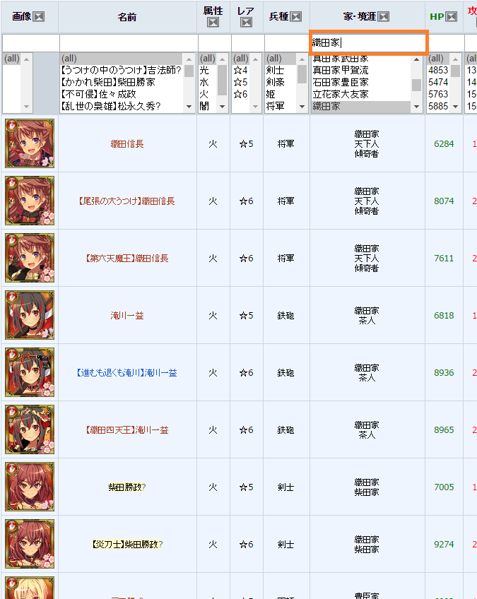• できるかどうかわからないけど、任意の複数キャラにチェックを入れたらフィルターで絞り込めるなんてことにはならないかな。できれば任意の比較がしやすくなる。実は秀吉の水着/非水着を比べようとして困ったのです。 -- 2016-07-26 (火) 22:06:30